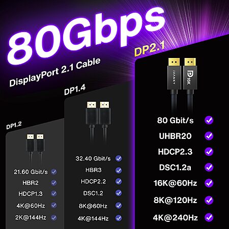 6.6Ft IVANKY 80Gbps Displayport Cable 2.1 $7.50 @ Amazon