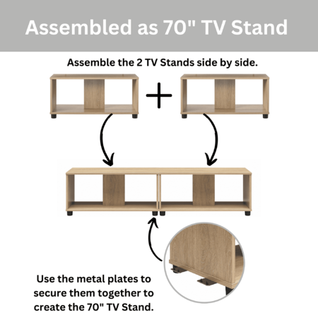 • Expandable Design: Constructed from engineered wood, the unit can be used side-by-side or stacked to accommodate most flat screen TVs up to 70 inches or up to 32 inches.