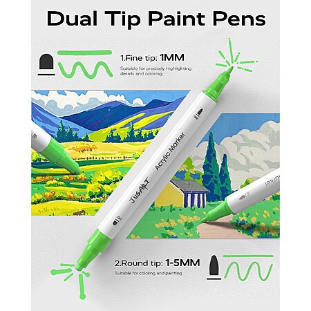 JusArt Dual Tip Acrylic Paint Pen Markers Sets (Various) on sale from 9.99 - 30% off when you enter the coupon code