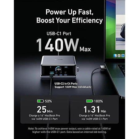 - High-Efficiency Charger: Power up your 16-inch MacBook Pro to 50% in just 25 minutes using the first USB-C port, which delivers 140W to significantly boost your productivity.