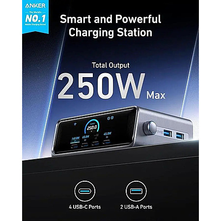 Newegg has Anker Prime Charging Station, 250W 6-Port GaN USB C Charger, 2.26" LCD Smart Display Control, Compatible with iPhone, Galaxy, MacBook, Dell for Home Office, Desk Accessories for $100.