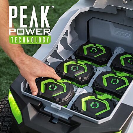 - CUTS UP TO 1.5 ACRES ON A SINGLE CHARGE - The EGO riding lawn mower cuts up to 1.5 acres on a single charge with six included 56V 6.0Ah batteries — add more batteries to cut 3, 4, 5, or as many acres as needed