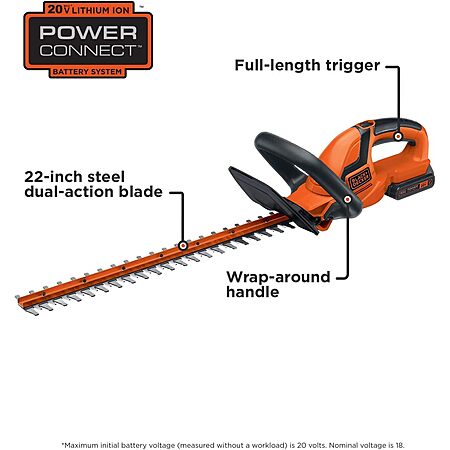 BLACK+DECKER 20V MAX Cordless Hedge Trimmer, Battery and Charger Included, 22 Inch Steel Blade Lightweight Bush Trimmer, Soft Grip, Less Vibration (LHT2220) on sale for