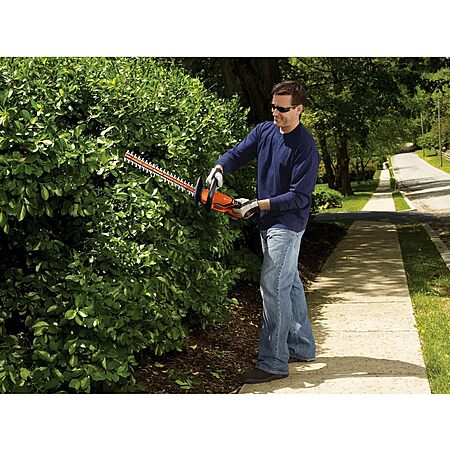 Features:- 22 in. dual-action blades on the shrub trimmer cut branches with up to 40% less vibration than single action blades