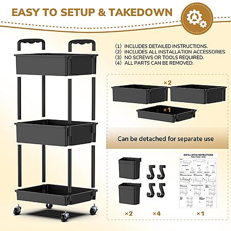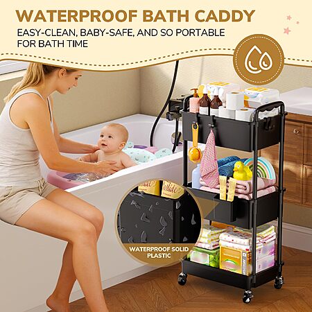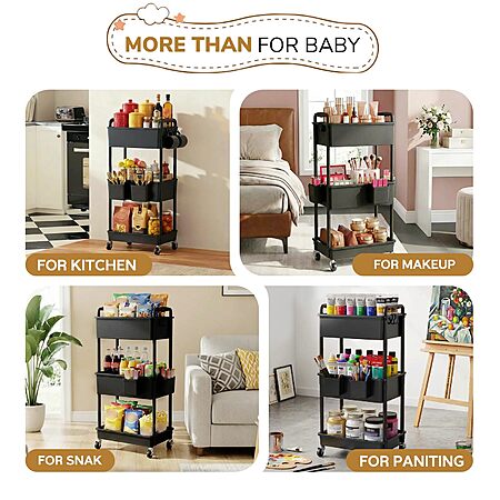 3-Tier Goovilla Caddy Cart Organizer, Lockable Wheels, Rolling Cart (Black, Pink or White) $14.99 + Free Shipping w/ Prime or on $35+