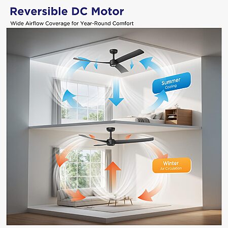 - Reversible Airflow Ceiling Fan: This quiet ceiling fan with a DC motor provides a cool breeze in summer and helps circulate warm air in winter, keeping your home comfortable year-round