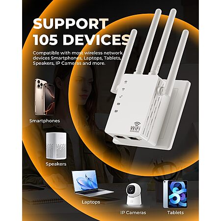 Accommodates up to 105 connected devices at once, supporting the growing number of smart home devices and personal electronics in modern households.