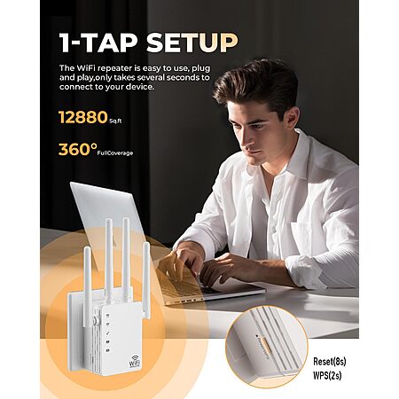 Extends WiFi coverage to 12880 square feet, ensuring consistent signal strength across your entire home, from the basement to the upper floors.