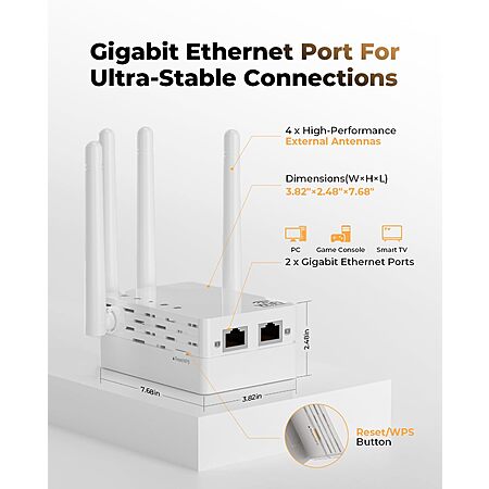 Model: 1.2Gbps Dual Band WiFi Extender, EasyMesh Compatible, 12880 Sq.Ft Coverage, WiFi Extender Signal Booster Supports 105 Devices with one Ethernet Port