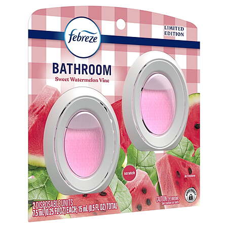 Febreze Bathroom Air Freshener, Small Spaces Watermelon or Gain Scents , 2 Count $5.94 get $3 Walmart cash FS PLUS