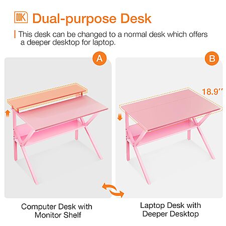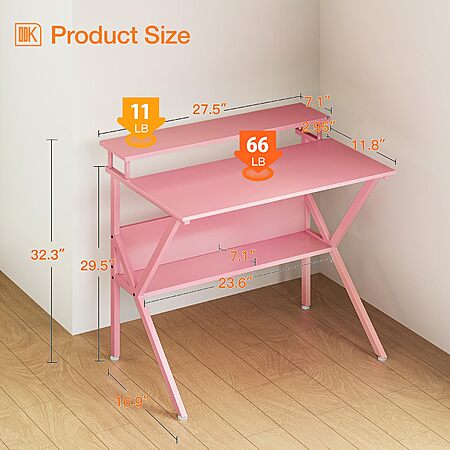 18.9"D x 27.5"W x 32"H ODK Study Desk w/ Storage & Monitor Stand (Pink) on sale for