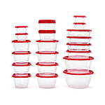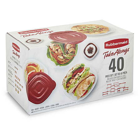 | Product Description: | Store, organize and pack a variety of foods with these Rubbermaid Take Along Containers. Ideal for meal prep, lunch, snacks, leftovers and more, they have updated, more durable bright-red lids, while the ridged design makes stacking easy. This Rubbermaid 40 piece storage set is also BPA-free, freezer and top-rack dishwasher safe and the bases are microwave safe for reheating, making them a wonderful choice for taking to work, school, the office, on picnics and to just store food in your fridge or freezer as well. The thick walls make them ideal for everyday use and when you stack them they take up less space in your cabinets. Rubbermaid Take Along Containers keep your food fresh and prevent leaks and are ready to reheat and store your favorite foods. Rubbermaid TakeAlongs 40 Piece Food Storage Set, Red, Total of 12.6 Qts Rubbermaid TakeAlongs 40 Piece Food Storage Set, Red, Total of 12.6 Qts Quick Clik Seal securely clicks lid to container base for a tight seal Set includes: four 0.5-cup mini containers with lids, two 1.6-cup Twist & Seal containers with lids, four 2.1-cup mini deep square containers with lids, four 2.9-cup square containers with lids, four 3.2-cup small bowl containers with lids, and two 6.2-cup medium bowl containers with lids Safe to use in freezer and dishwasher on the top rack Ruby-colored lids, clear bases Improved leakproof Twist & Seal lids are ideal for storing and transporting soup, sauces, and other liquids Made from BPA-free plastic with microwave-safe base |