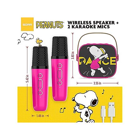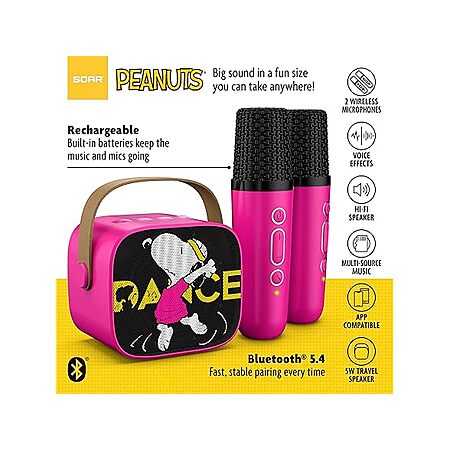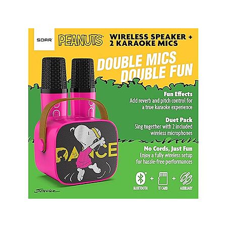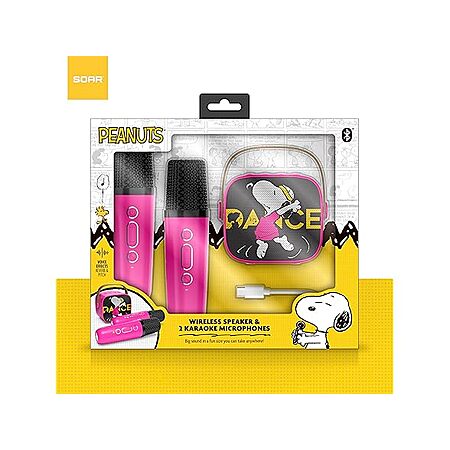 New SOAR Peanuts Wireless Speaker and 2 Karaoke Microphones Black $10 FS with Prime Woot