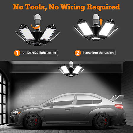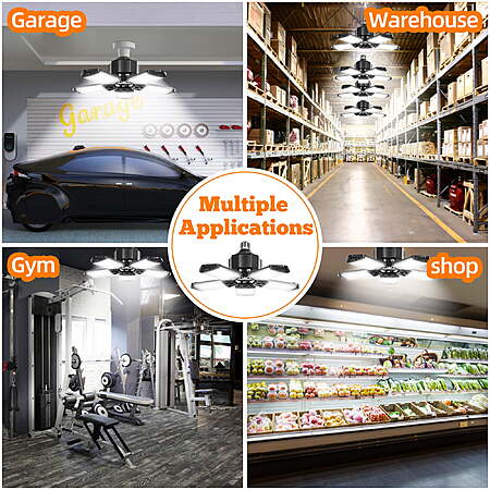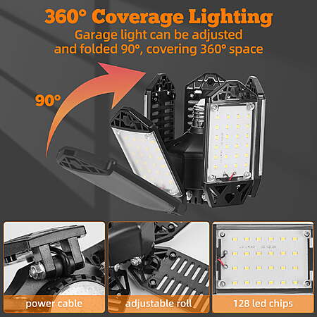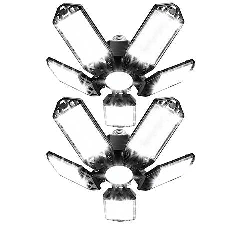 • Adjustable Panels LED Garage Light: Features 5 adjustable panels and 1 fixed circular center panel, each adjustable from 0 to 90 degrees for customized lighting coverage