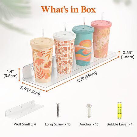 Lifewit Floating Shelves, 14" Acrylic Wall Organizer, Clear, 4 Pack - $9.99