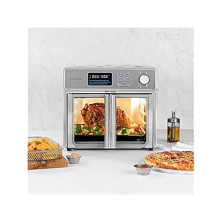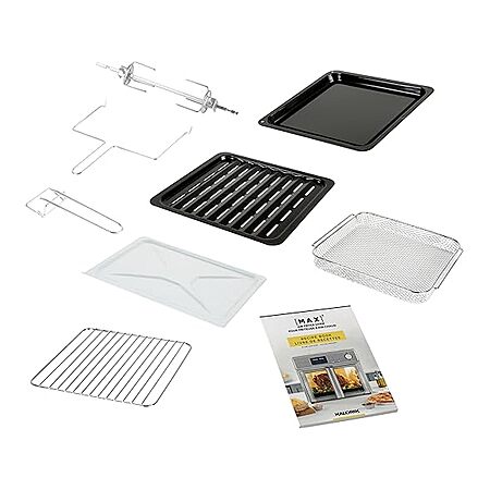 - High-quality features and accessories included: simple LED touch screen with 21 intelligent presets, 500 °F for caramelised meat and vegetables, French doors for safety and comfort, as well as 9 additional accessories and a complete recipe book.