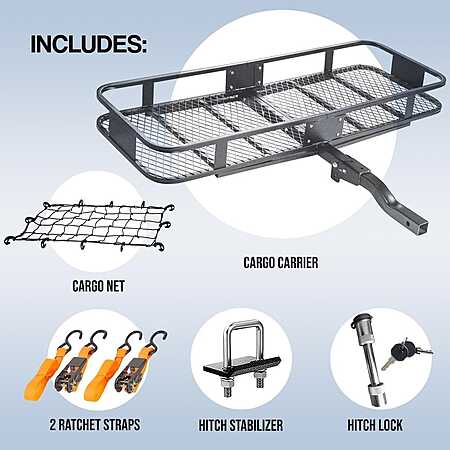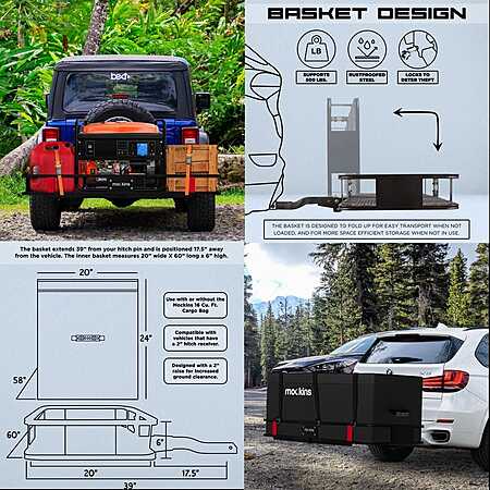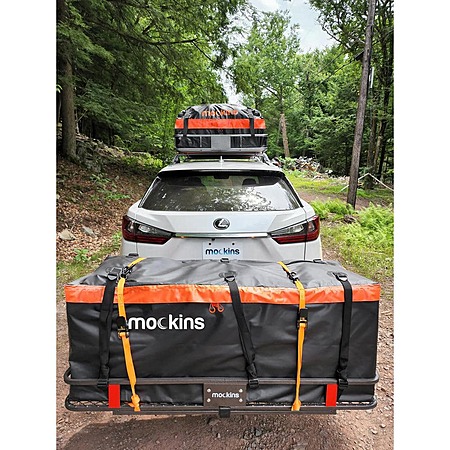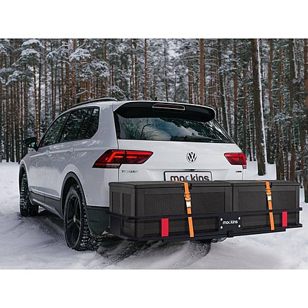 Mockins Hitch Mount Cargo Carrier Set w/ Net, Basket, Straps, Foldable Shank & 2" Raise (500-lb Capacity) on sale for