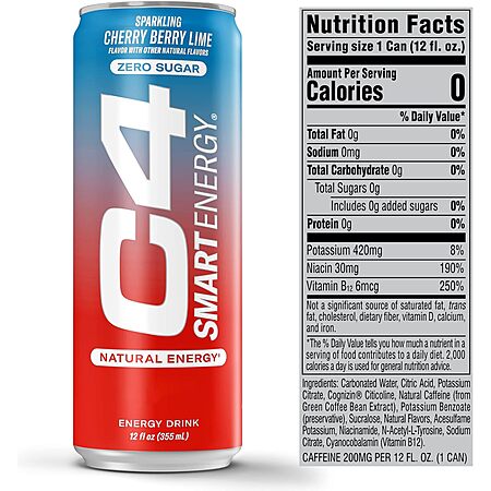 Cellucor C4 Smart Energy Drink - Sugar Free Performance Fuel & Nootropic Brain Booster, Coffee Substitute or Alternative | Cherry Berry Lime 12 Oz - 12 Pack