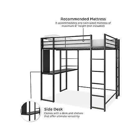 DHP Abode Twin Size Metal Loft Bed, Black $129.99 +FS w/Prime