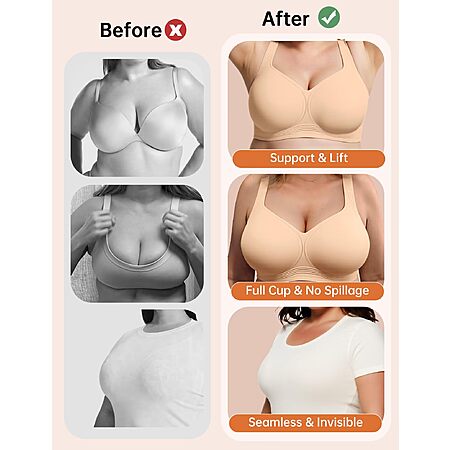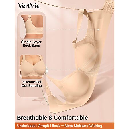 Vertvie Jelly Bras for Women Plus Size Minimizer Soft Wireless Push Up Bra Full Supportive Older Lift Back Coverage Bralette(Skin,38D) $18.88