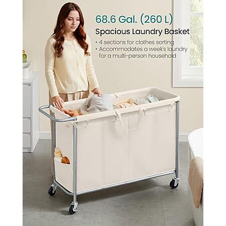 Amazon [amazon.com] has SONGMICS Laundry Basket with Wheels, 4-Section Rolling Laundry Hamper for $45.99.