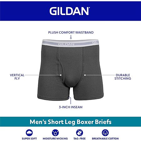 Gildan mens Underwear Boxer Briefs, Multipack of 5 $10.10 clip Q FS w/Prime AMAZON