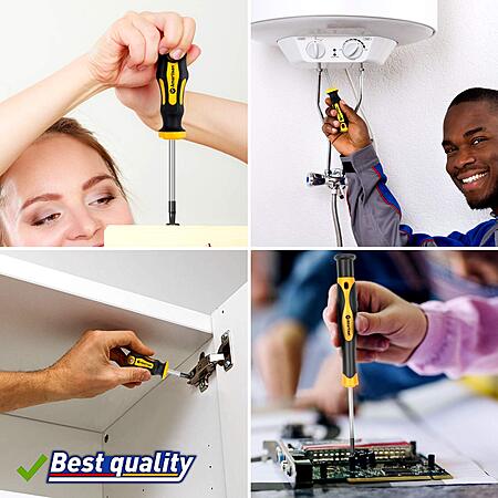 • Ergonomic non-slip and soft handle which is made of pp+tpr materials, let you feel soft and comfortable at work.Each Precision screwdrivers has a 360 degree rotation that allows you rotate the screws smoothly.