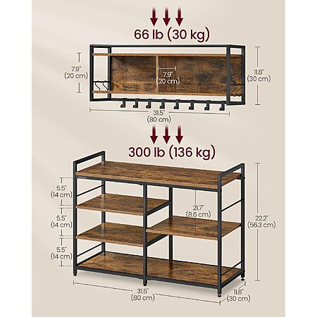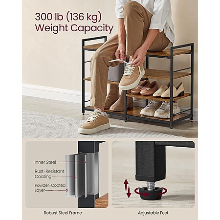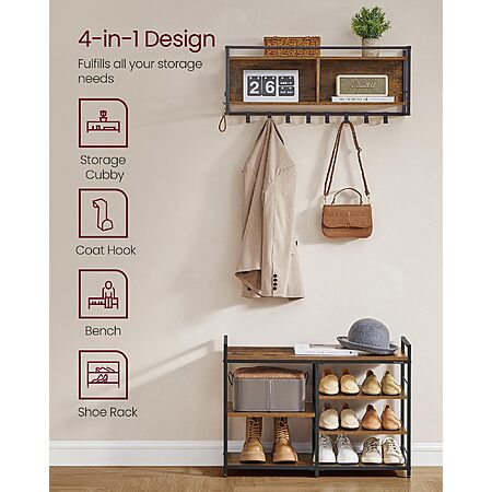 VASAGLE Hall Tree with Shoe Bench, Rustic Brown - $35.99