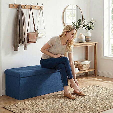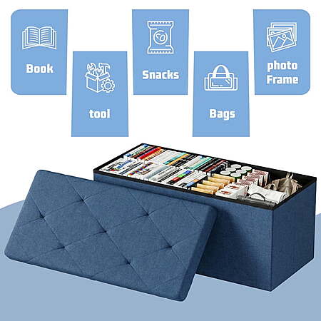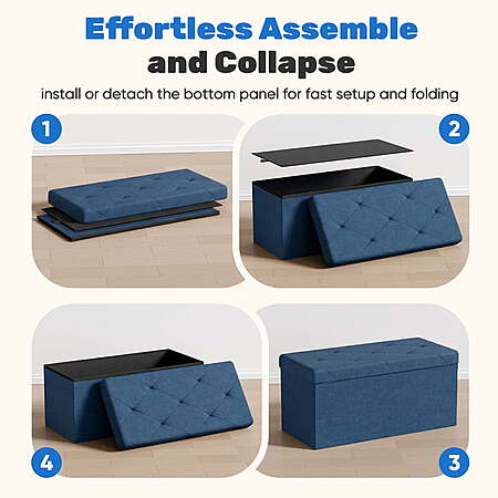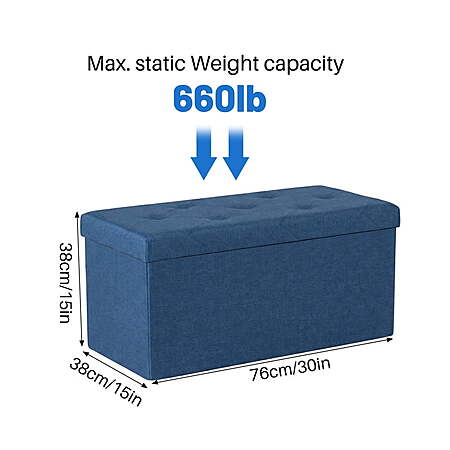 Model: Gianna 30 Inches Folding Storage Ottoman Bench, Storage Chest, Foot Rest Stool, Bedroom Bench with Storage, Blue