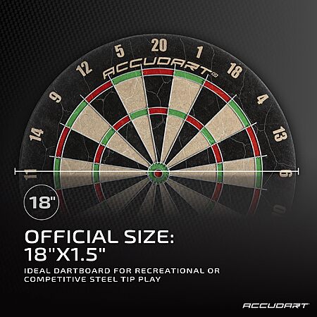 Amazon.com has Accudart Classic Bristle Dartboard – Official 18" x 1.5" Sisal Board, Self‑Healing Fibers, Staple‑Free Bullseye, Reduced Bounce‑Outs – Ideal for Steel‑Tip Darts on sale for $20.24.