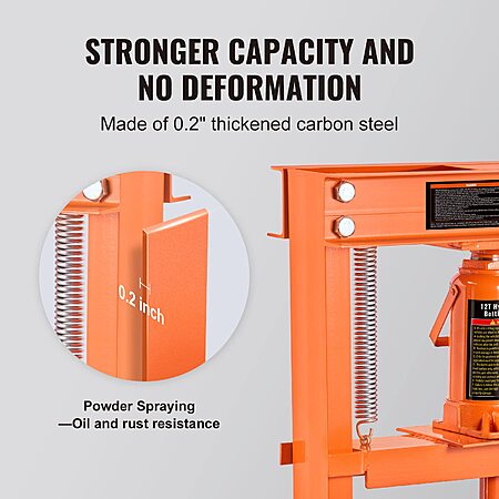 - 12-Ton Capacity: Perfect for removing/installing bushings, bearings, joints, pulleys, and metalworking tasks like bending and stamping.