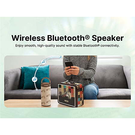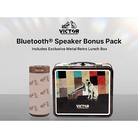 | Product Description: | This Bluetooth� Speaker with Lunch Box Combo combines modern audio technology with a touch of retro charm for a delightful experience. Equipped with wireless Bluetooth� connectivity, it ensures stable and high-quality audio streaming from your devices. The TF card slot allows you to play music directly from your TF card, while the built-in phone holder offers convenient control and viewing. Powered by a lithium-ion battery, the speaker provides up to 3 hours of playtime on a single charge, so you can enjoy your music without interruptions. Its portable and compact design makes it perfect for music on the go, whether you're at home, outdoors, or at a park. The included Victor Retro Design Metal Lunch Box adds a nostalgic touch to your meal times. PORTABLE BLUETOOTH SPEAKER FOR WIRELESS STREAMING – Enjoy rich, clear sound anywhere, perfect for home, outdoor fun, or music on the go. TWS PAIRING FOR STEREO SOUND EXPERIENCE – Connect two speakers via True Wireless Stereo for immersive audio, ideal for parties, gatherings, or larger spaces. MULTI-PLAYBACK OPTIONS WITH TF CARD & PHONE HOLDER – Stream music wirelessly, play directly from a TF card, or use the built-in phone holder for convenient hands-free control anytime. RECHARGEABLE PORTABLE DESIGN – Lightweight and easy to carry, this speaker moves effortlessly from room to park, making it ideal for music lovers on the move. EXCLUSIVE RETRO METAL LUNCH BOX BONUS – Includes a collectible Victor lunch box with nostalgic design, perfect as a holiday gift or unique present for teens, parents, and music enthusiasts. |