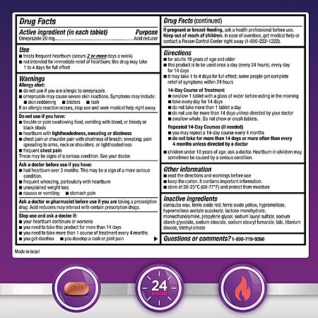 - 14-DAY COURSE OF HEARTBURN TREATMENT: Taken once every 24 hours for 14 days, GoodSense Omeprazole Delayed Release Tablets 20 mg is not intended for immediate relief of heartburn and may take 1 to 4 days for full effect.