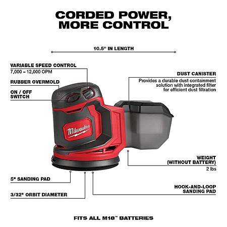 Milwaukee M18 18V Lithium-Ion Cordless 5 in. Random Orbit Sander with 2.0 Ah Compact Battery $130