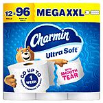 Charmin Ultra Soft Toilet Paper - 12 Mega XXL Rolls = 96 reg.: $24 Free TARGET360 Shipping, buy 3, get $10 TGC (5% less with red card)