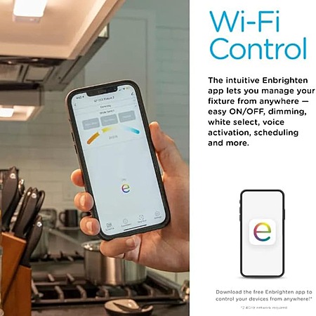 - The Enbrighten app lets you adjust brightness, fine-tune color temperature from 2000K–6500K and turn the fixture on or off, while also unlocking voice control, scheduling and automation features