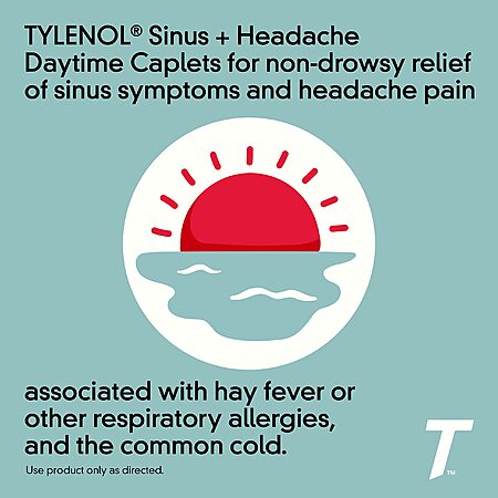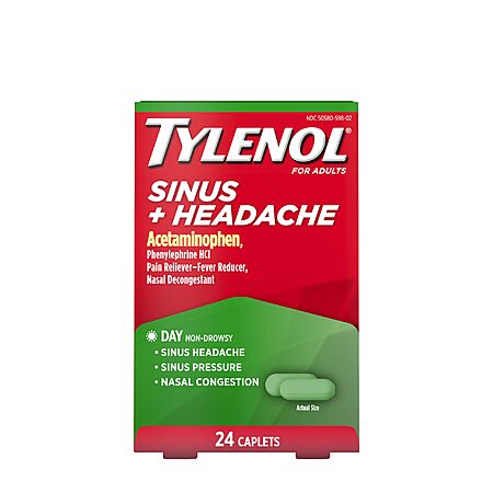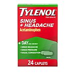 Tylenol Sinus + Headache Daytime Non-Drowsy Relief Caplets, Acetaminophen 325mg, Nasal Decongestant for Sinus Pressure, Headache & Nasal Congestion Relief, 24 ct $6.99