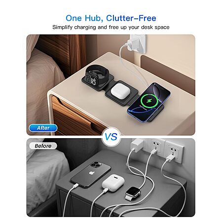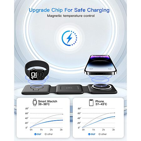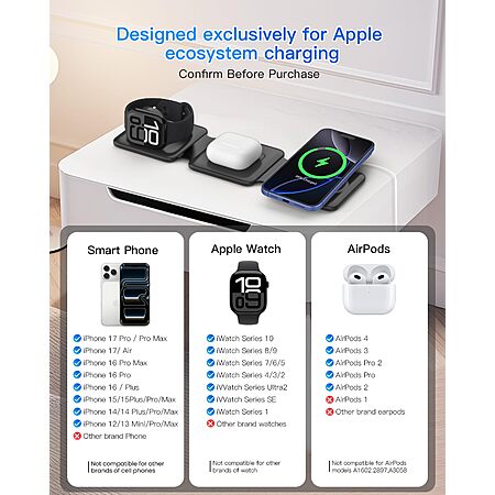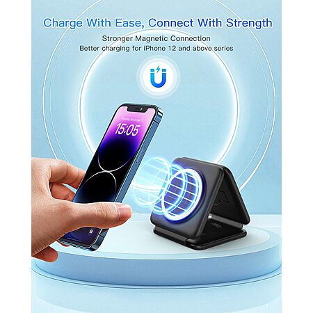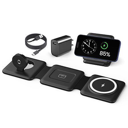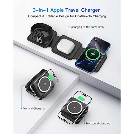 Magnetic Wireless Charger for iPhone: Fodable 3 in 1 Charging Station for Multiple Apple Devices $26.56