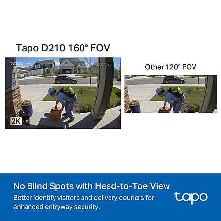 Model: Tapo by TP-Link Smart Video Doorbell Camera Wireless with Chime, 2K with Full Color Night Vision & Spotlights, No Monthly Fee, Ring Call, 160° Ultra-Wide View, Free AI Detection, Local Storage,D210