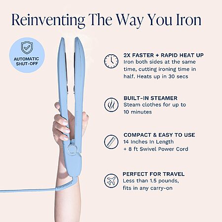 Nori Press Travel Steam Iron - Handheld Iron With Optional Steam Feature Blue $95.2