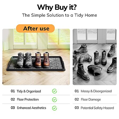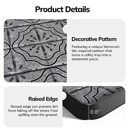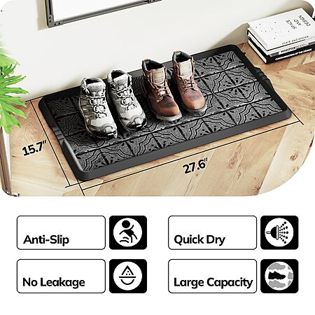 - 【Textured Surface & Raised Edges】The tray's non-slip rubber surface has a textured pattern to help keep shoes in place and prevent them from sitting in dirty water. The raised edges are high enough to contain spills and overflows.