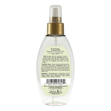 OGX Nourishing + Coconut Oil Weightless Hydrating Oil Hair Mist, Lightweight Leave-In Hair Treatment with Coconut Oil & Bamboo Extract, 4 Fl Oz $5.99