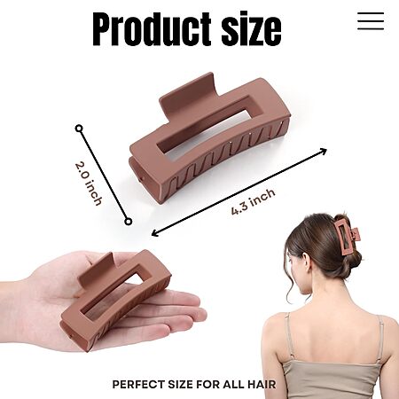 • 📏 Comfortable Size for Easy Styling Each clip measures 4.3" x 1.85" x 1.97", designed to accommodate various hair textures without tugging. Use for half-up looks, buns, or simply keeping your hair out of your face.