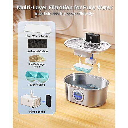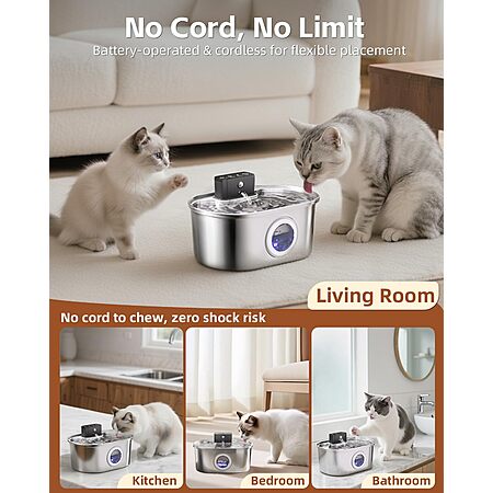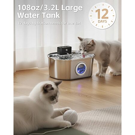 Select Amazon Accounts - Cat Water Fountain Wireless - Stainless Steel 3.2L/108oz. - $10.79 AC