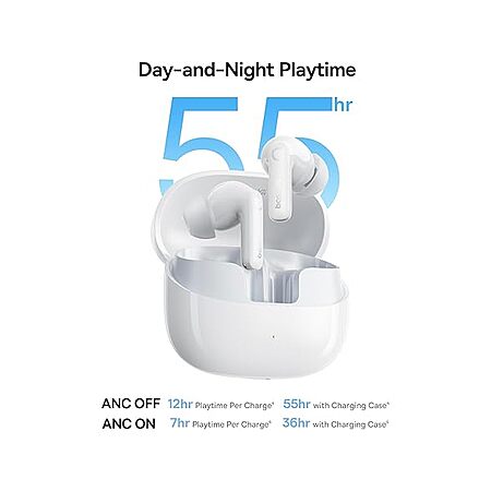 - Day-and-Night Playtime: 12 hours per charge (ANC off) or 7 hours (ANC on), with 55 hours total (case) and a quick 10-minute charge for 2.5 more hours of music.