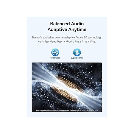 - Adaptive Balanced Audio: Volume-adaptive Active EQ technology for deep bass and crisp highs, with SuperBass for rich beats or SuperBalance for detailed clarity.