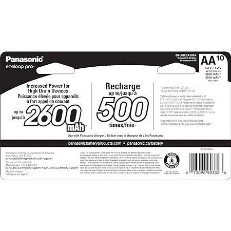 Model: Eneloop Panasonic BK-3HCCA10FA pro AA High-Capacity Ni-MH Pre-Charged Rechargeable Batteries, 10-Battery Pack