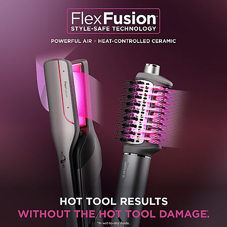 Model: Shark FlexFusion Hair Straightener & Powerful Hair Dryer with Fusion Hair Brush, Ceramic Air Styler with Auto-Wrap Hair Curlers, Concentrator, & FrizzFighter, Ceramic Plates, Metallic Mist, HD651S