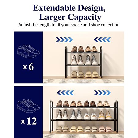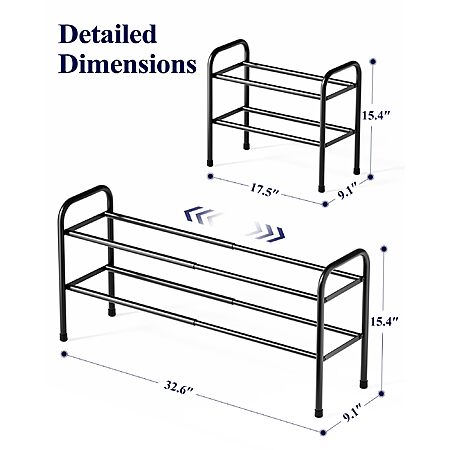 17.5" - 32.6" Kitsure 2-Tier Extendable Metal Shoe Organizer Rack (Black) $9.99 + Free Shipping w/ Prime or on $35+