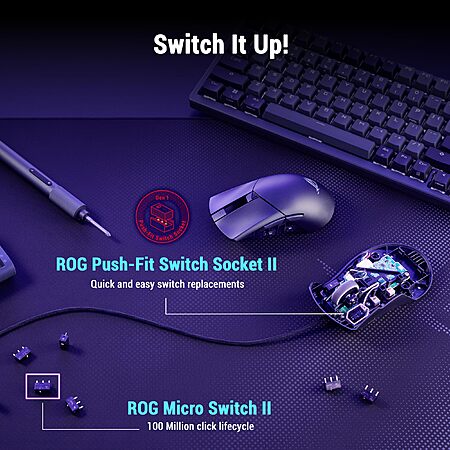- ROG Micro Switch II: Crisp clicks with exceptional 100-million-click lifespan.